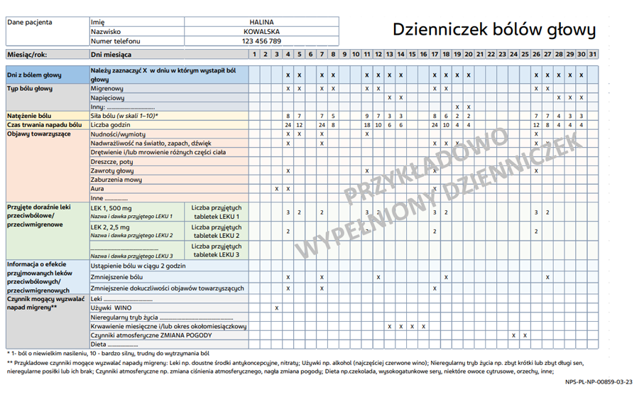 Dzienniczek bólów głowy dostępny na stronie www.migrena.pl