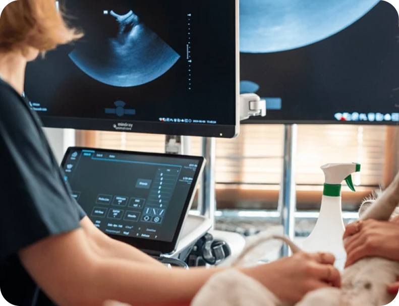 USG (ultrasonografia) to bezpieczne, nieinwazyjne badanie obrazowe wykorzystujące fale dźwiękowe do oceny narządów wewnętrznych, tkanek miękkich, naczyń krwionośnych oraz stawów. Pozwala na szybką i precyzyjną diagnozę wielu schorzeń.